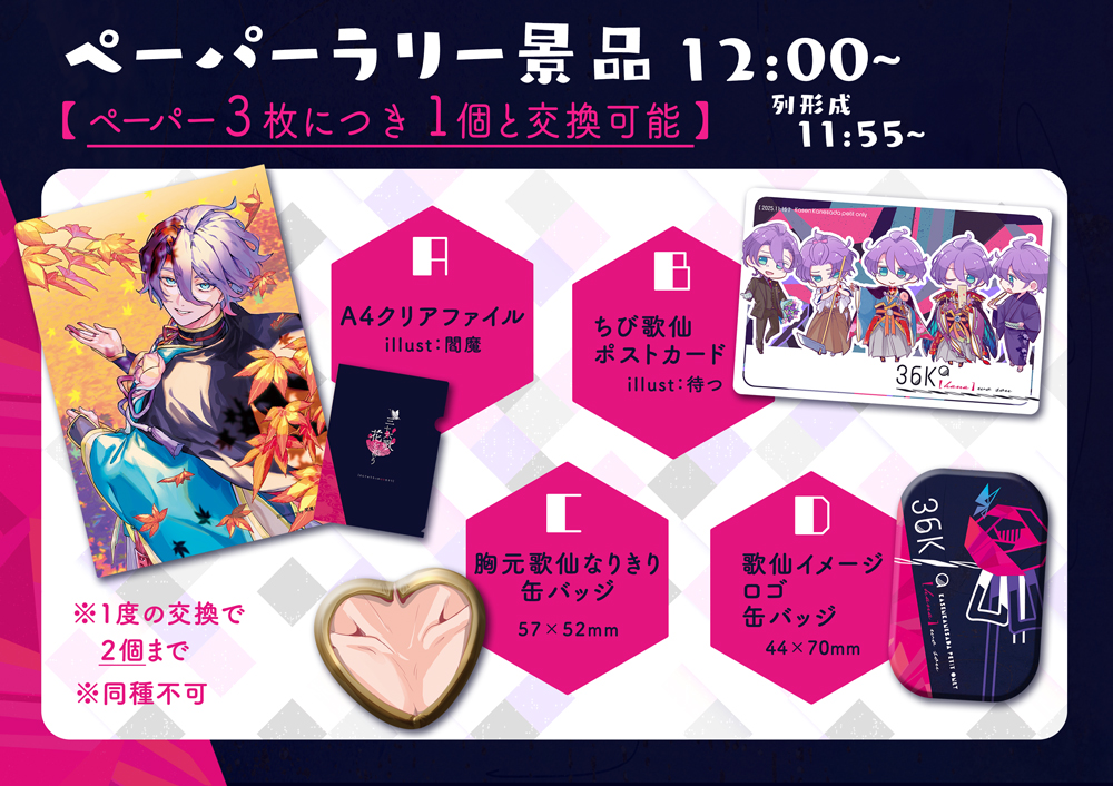 - 11:55より前のスペース周辺への集合は他サークル様へのご迷惑となりますのでご遠慮ください。